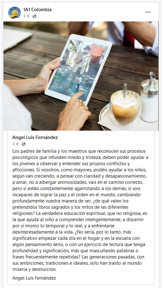 Este texto no es del Dr. Angel Luis Fernández: es un extracto de un texto de Krishnamurti titulado “La verdadera clase de educación”.